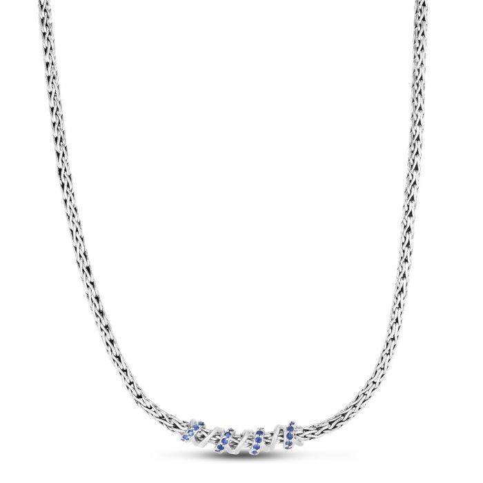 PHILLIP GAVREL Sterling Silver 17" Blue Sapphire Spiral Woven NECKLACE