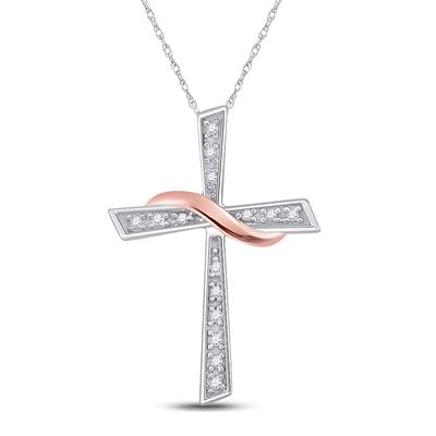 Rose And White Polished Sterling Silver Contemporary Cross Pendant With 15=0.05Tw Round H/I Si3-I1 Diamonds