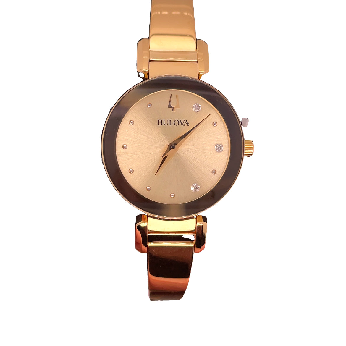 BRING THE ROMANCE OF MARC ANTHONY’S MUSIC TO THE WRIST IN THIS ESSENTIAL ACCESSORY THAT UNITES BULOVA’S FINE WATCHMAKING AND MARC ANTHONY’S ICONIC MUSIC IN AN EXCLUSIVE COLLABORATION. THE NEW BULOVA MARC ANTHONY MODERN BANGLE LADIES’ WATCH HIGHLIGHTS BULOVA’S TIMELESS DESIGN WITH A TOUCH OF ANTHONY’S STYLING. THE GLEAMING GOLD-TONE STAINLESS STEEL CASE FEATURES BOLD CONTEMPORARY LINES AND HAS A METALIZED MINERAL CRYSTAL THAT EXTENDS TO THE EDGE FOR A SEAMLESS SILHOUETTE. A RADIANT CHAMPAGNE DIAL IS ACCENTED BY THREE DIAMOND HOUR MARKERS AT 1, 3, AND 5 O’CLOCK, NUMBERS CHOSEN BY ANTHONY FOR THEIR PERSONAL SIGNIFICANCE. THE CASE BACK FEATURES AN ENGRAVING CHOSEN BY ANTHONY: “VALIÓ LA PENA” (IT WAS WORTH IT). A POLISHED GOLD-TONE STAINLESS STEEL BANGLE BRACELET IS CONNECTED BY UNIQUE FACETED LINKS, COMPLETING THE STRIKING LOOK OF THIS TIMEPIECE. MARC ANTHONY’S MUSIC TRANSCENDS TIME, AND THIS ELEGANT, MODERN WOMEN’S WATCH FROM BULOVA EXPRESSES A TIMELESS STYLE.